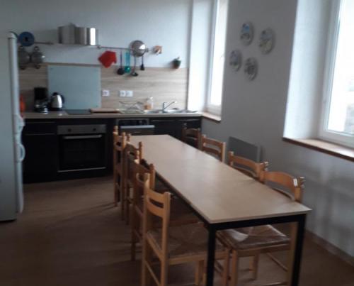 Gîte composé d'un grand salon, une cuisine coin repas, 5 chambres, 2 salle d'eau et 2 wc.